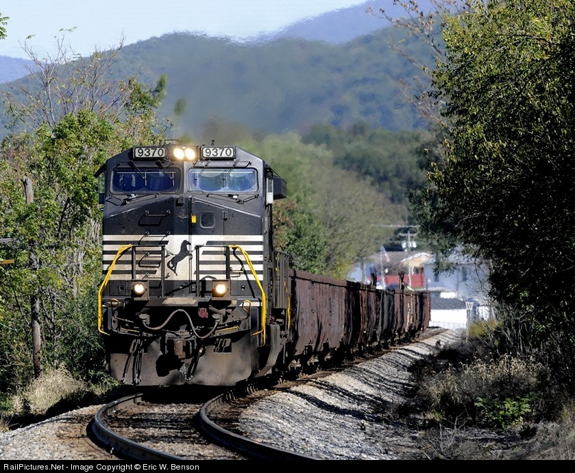 | After waiting for the 38Q to clear Stanley, VA, 93V comes SB with NS 9370 as the sole motor on this work train. |