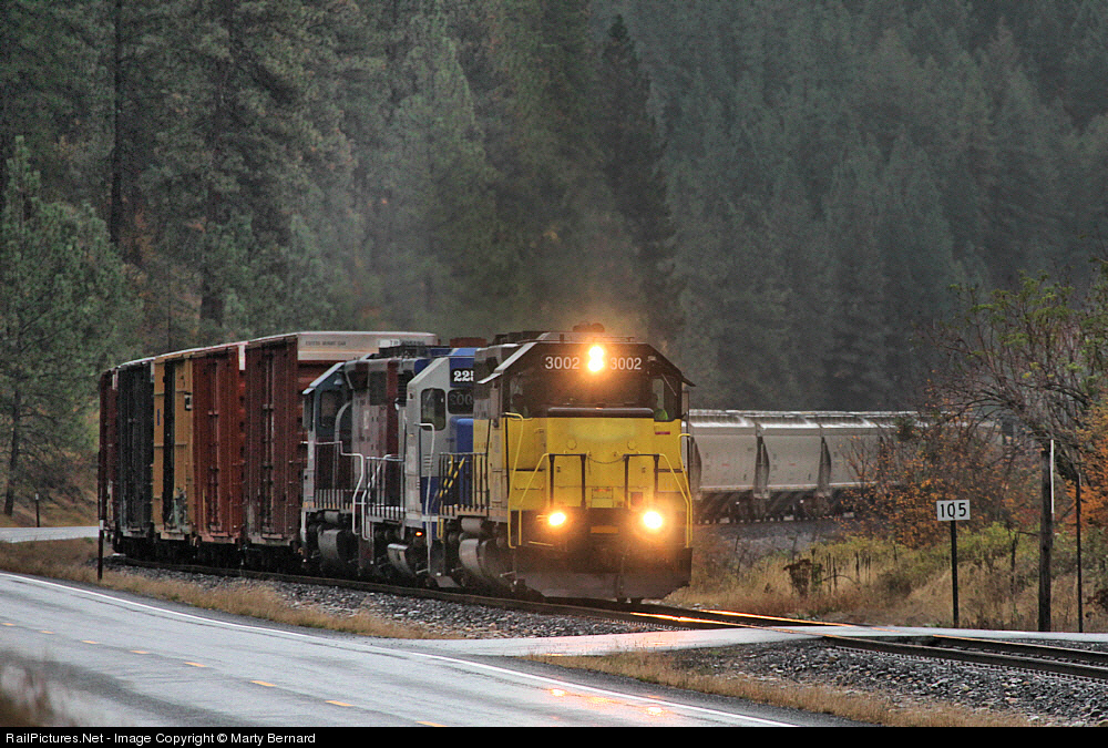 Yes it's raining, it's the Pacific Northwest. The Kettle Falls International Railway's Waneta (British Columbia) Job runs from Kettle Falls, WA along 150-mile long Lake Roosevelt (formed by the Grand Coulee Dam on the Columbia River) in northeast Washington State and into Canada (about 48 miles). It is called a about 7:00 a.m., makes up it's train, heads north about 8:00 a.m., and crosses into Canada about noon.