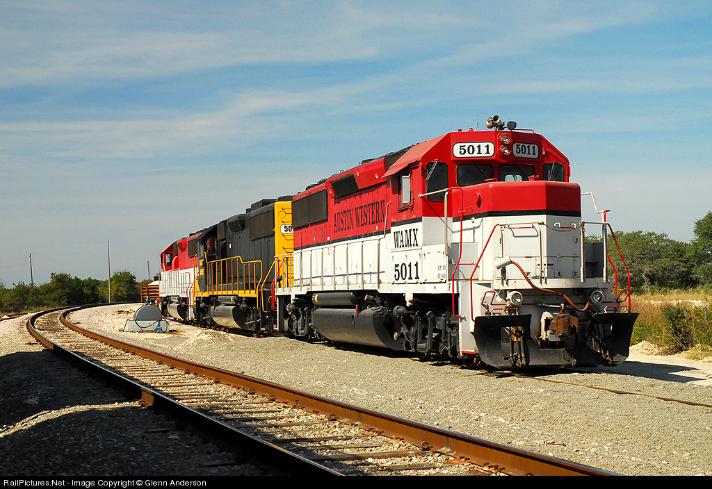 A trio of former C&NW GP50's (WAMX 5011,5002,5003, originally C&NW 5092,5059,5062) await the call to duty in AWRR's Summit yard on the former SP, originally Houston & Texas Central's Llano branch. Heavy eastbound rock trains are doubled up the hill to here before continuing eastward.