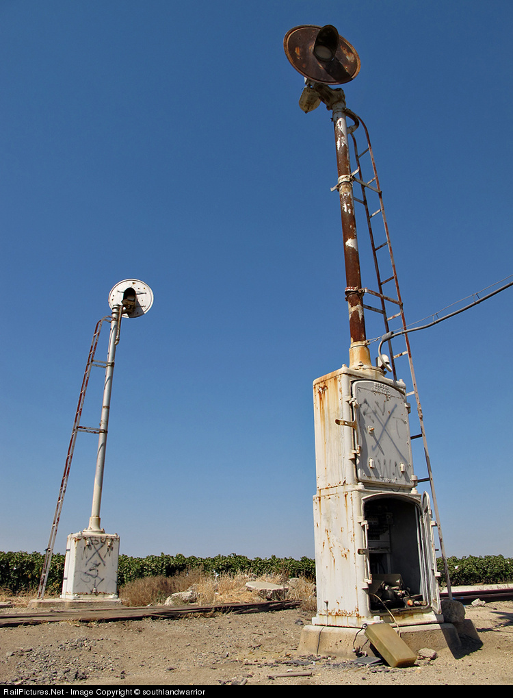 | A pair of US&S relics stand guard along the now abandoned Southern Pacific Porterville Sub in the tiny farming community of Richgrove. The line was once an important and busy route for SP's perishable traffic out of the Central Valley, but hasn't seen a train since the early 1990's, and now awaits its inevitable fate. |