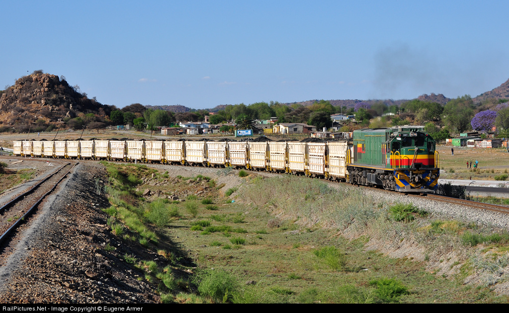 | On the final leg of its journey from the western end of the Rustenburg Platinum Mines system, ex- Sheltam C30 no. 3007 is passing the junction for the "branch" to Frank Shaft, as it heads towards Waterval Plant for unloading. The "Sheltam Grindrod" lettering on this locomotive has already been painted over, since its sale to Anglo Platinum. |