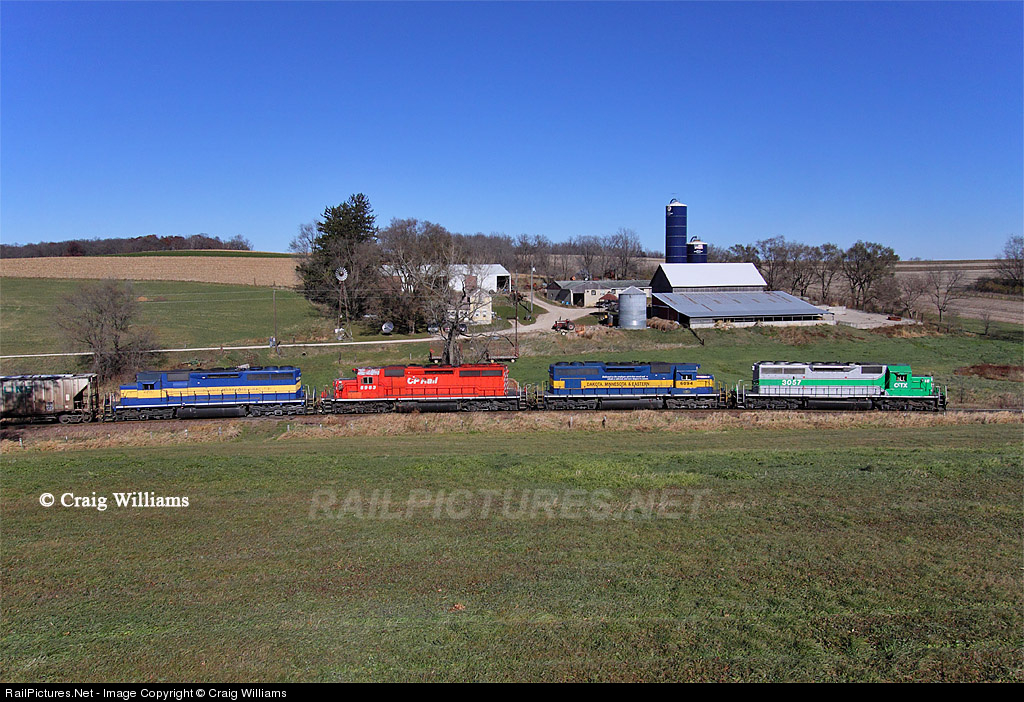A Mona, IA, to Chicago, IL, ethanol train begins the twist and turns working down the Monona Hill from MP 11. Here they bend around one of the many curves as they past one of the farmstead tuck away in the valley. 4 SD40's power this 80 car train, which is needed to get the train up Calmar Hill, and usually after Calmar the crew will setout one motor for the rest of the trip to Chicago. Today they will do it at Marquette. Photo: private property with permission.