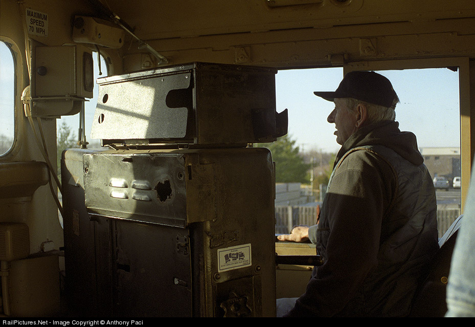 The late Steve Bremmer at the controls of the Conrail Shared Assets Operations SA35 switching a Gold Lumber in Farmingdale, N.J.
