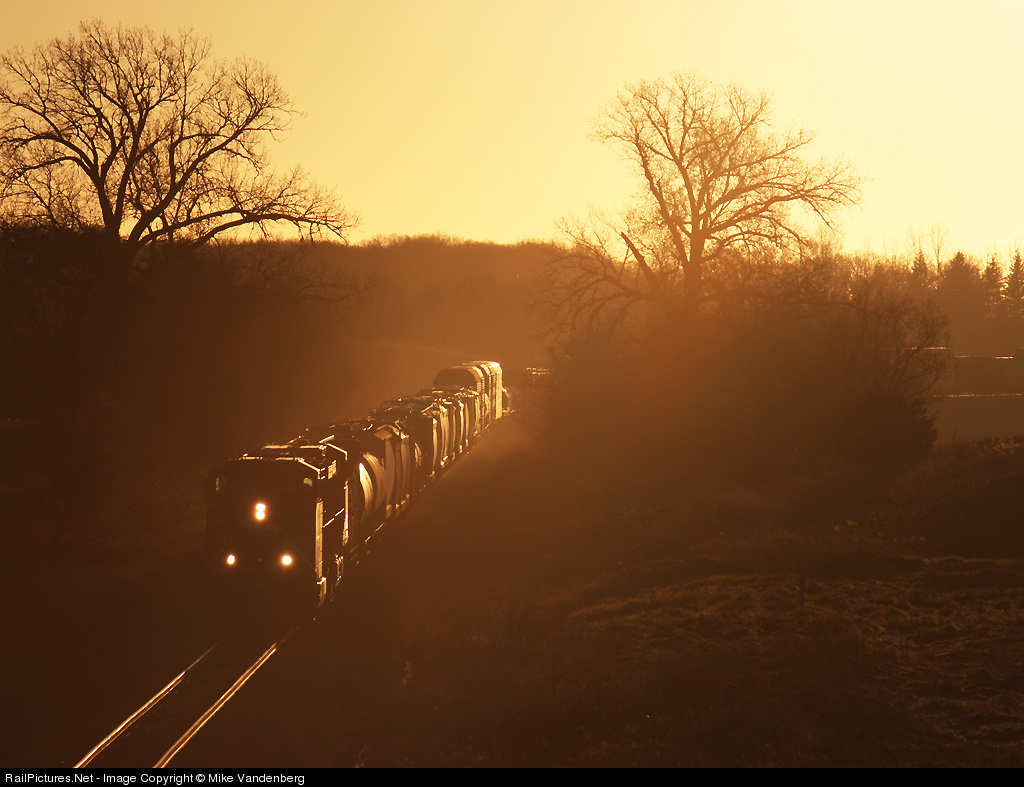 293 cruises west through central Minnesota just a few minutes after sunrise.