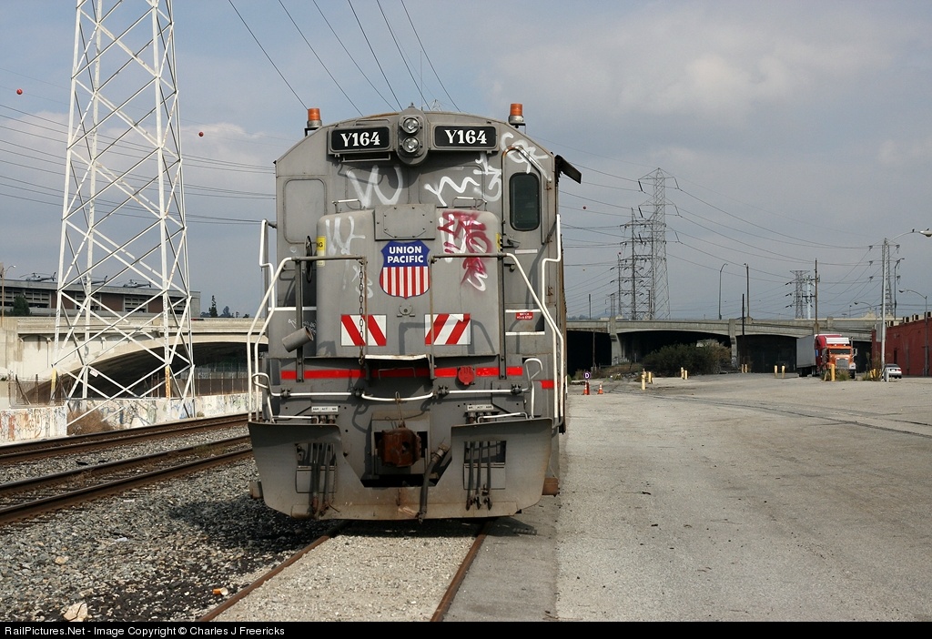 There's a wonderful photographer (Robert Morris) whose favorite phrase is "it's all crap now." Finding this radio sled, built out of a B30-7, apparently bad ordered (for at least a year now) on the Myers Team Track, attacked by graffiti punks for that entire time, just makes me very sad. The area to the right is where the grand Los Angeles & Salt Lake freight depot once stood.