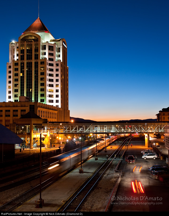 The sun has set, the passengers are off the train, and all that's left to do after today's round trip excursion from Roanoke to Bluefield, WV is reverse the special back into the yard. Note the dome cars up front going under the pedestrian walkway, and the old N&W office buildings on the right edge of the frame. Given the large crowd boarding the train in Roanoke for each of the weekend's trips, hopefully these rare mileage fall excursions will continue to be an annual event.