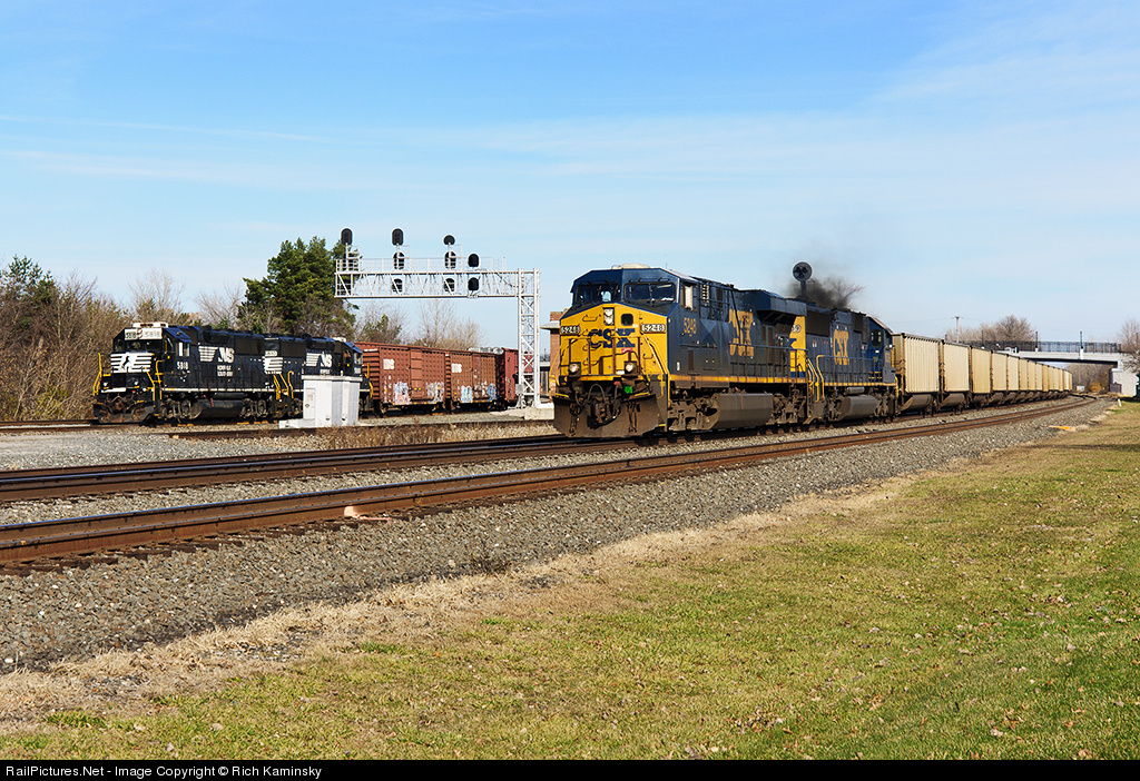 CSX empty coal drag E960 and Norfolk Southern local job BR15 passing CP194