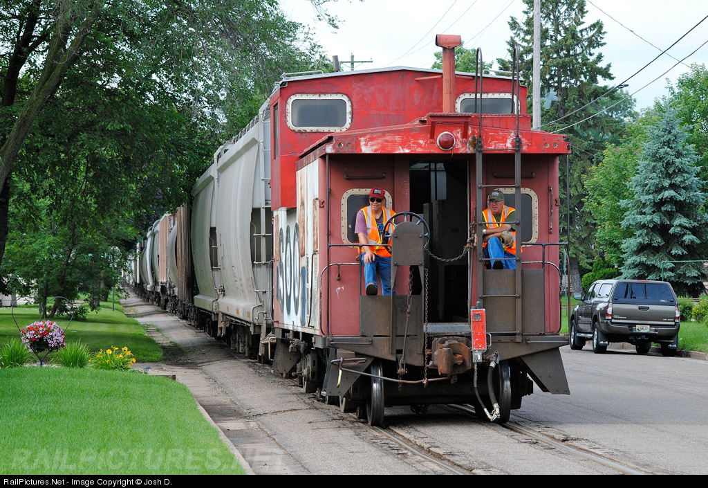 Both conductor and break man protect the rear of G77 as it shoves down Wall Street. Sure not many places left where one can still find street running, let alone used by a train with a caboose!
