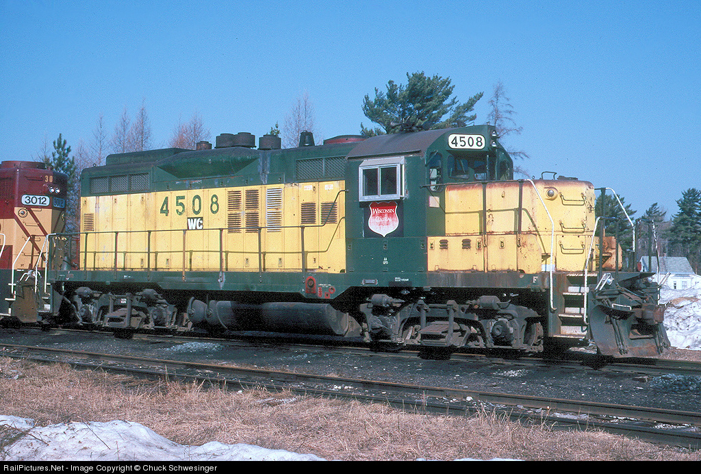 RailPictures.Net Photo: WC 4508 Wisconsin Central EMD GP9 at Trout Lake, Michigan by Chuck Schwesinger