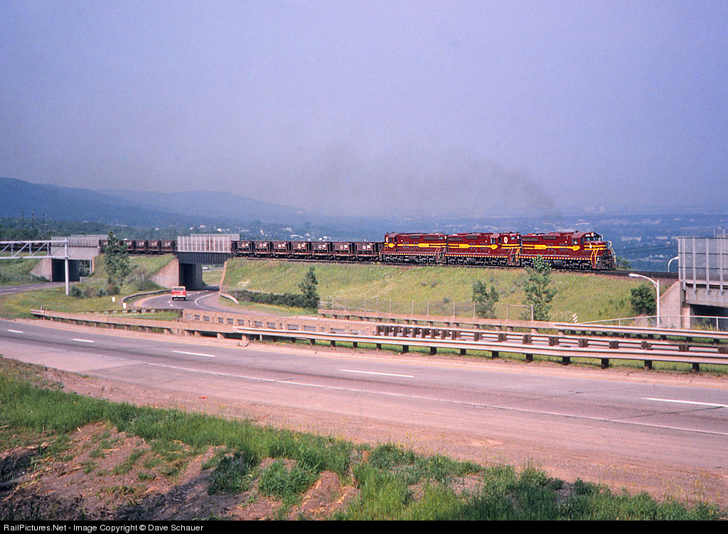 Missabe's first rebuild leads a pair of unrebuilt sisters and a healthy cut of ore cars up Proctor Hill and out of a fog shrouded Duluth.