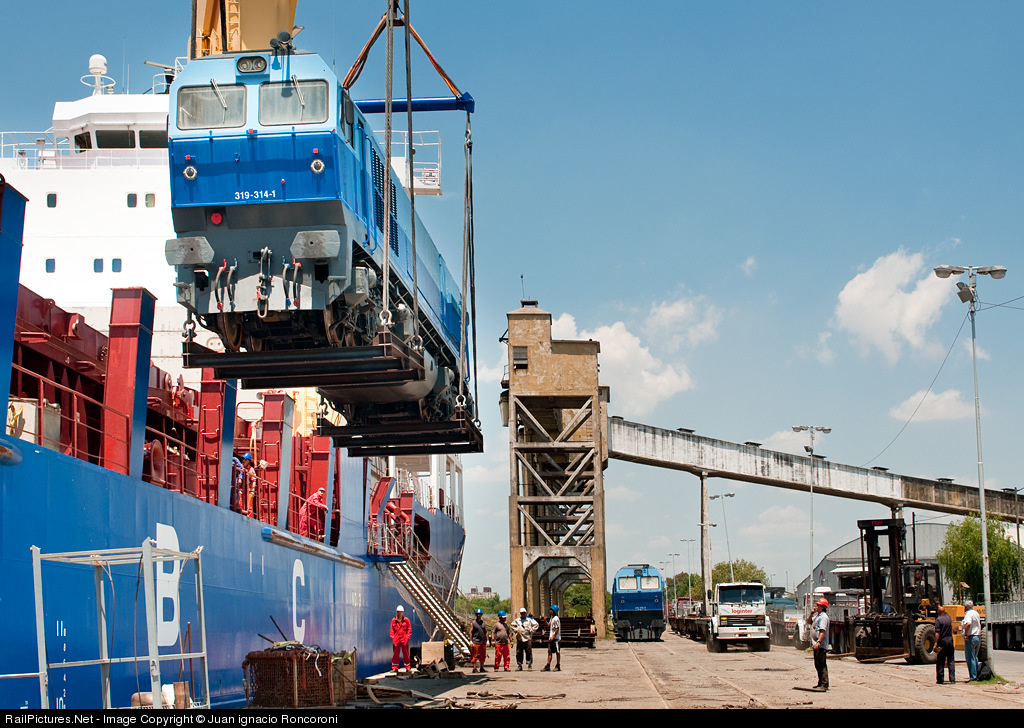 Locomotive from Spain at a time of being discharged from the ship that transported in the dock at the port of Dock Sud. More photos http://www.juanironcoroni.com/index.php?mod=2&idalbum=72157625335500505