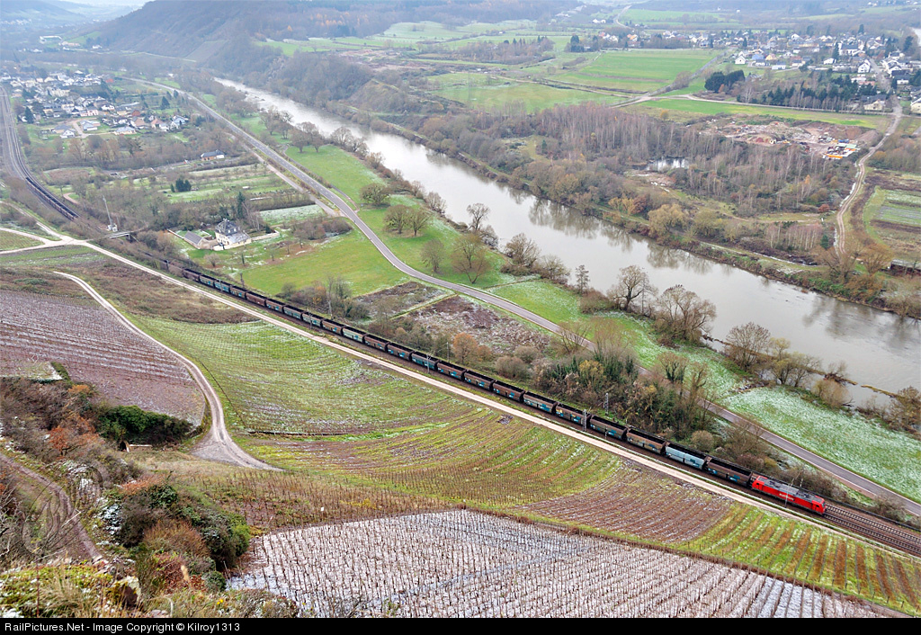 | An empty unit coal train returns from the blast furnaces, passing through a quiet Saar valley after one of its first snow falls in autumn 2010. |