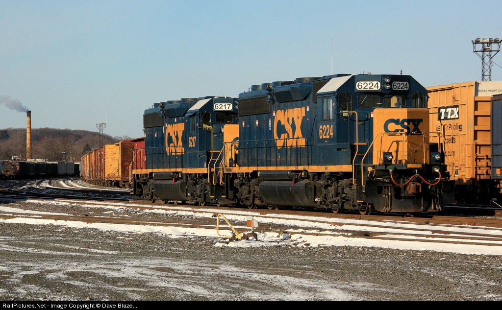 Former B&O and WM geeps repose at the east end of the former Boston & Albany Yard on a wickedly cold Saturday morning in New England. This view looks west into the yard just west of CP99. The smokestack and rolling hills in the distance seem timeless having looked down on B&A Berkshires, gleaming NYC E-units on the New England States, PC Black, Conrail Blue, and now the C&O inspired look of current owner CSXT.