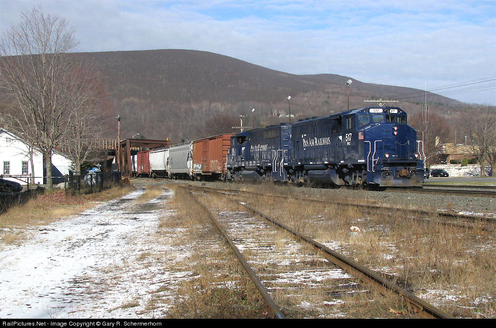 Old Man Winter is a slowly knockin' on the door as a mini RJED with 15 cars rattles by the old freight house for the tunnel. Both the 517 & 516 have been 'demoted' from their lofty statis as former OCS power to freight duty but still staying together as a pair-at least on this turn.