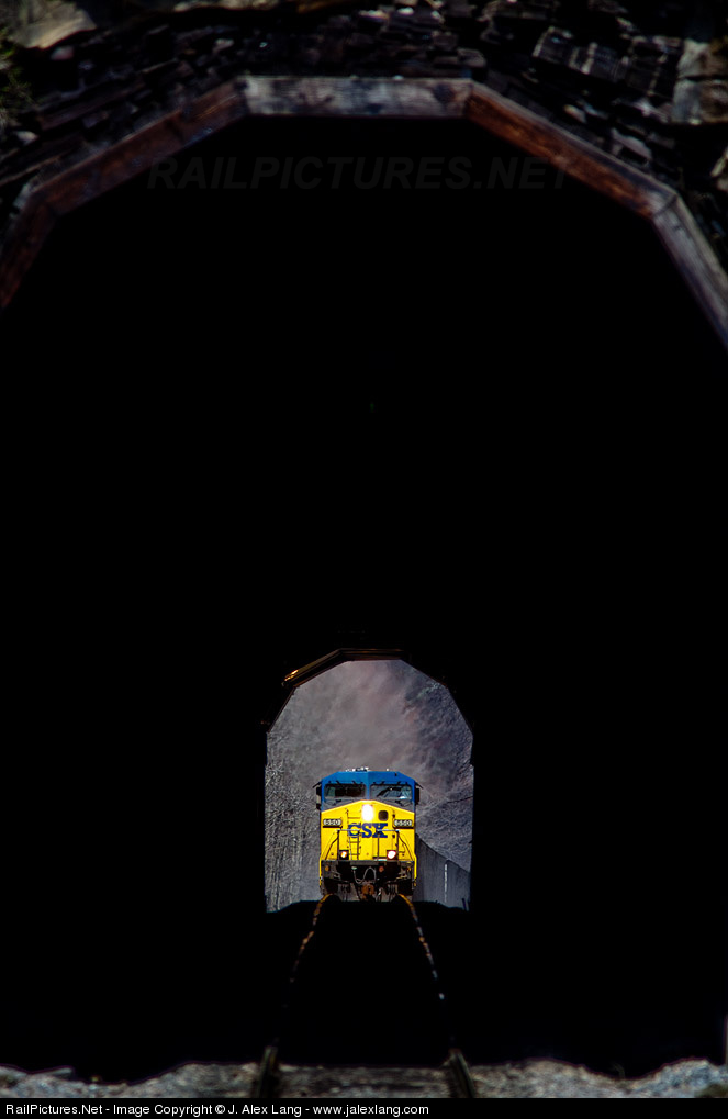 The only active, wood-lined tunnel I've ever seen, at Quinwood, WV on the former NF&G lines radiating from Rainelle, WV. The CSXT 550 is working hard, pulling coal loads back to the yard. The slow pace allows for the opportunity to try a few different angles.