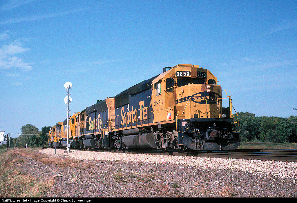 RailPictures.Net Photo: ATSF 3853 Atchison, Topeka & Santa Fe (ATSF) EMD GP50 at Niota, Illinois by Chuck Schwesinger
