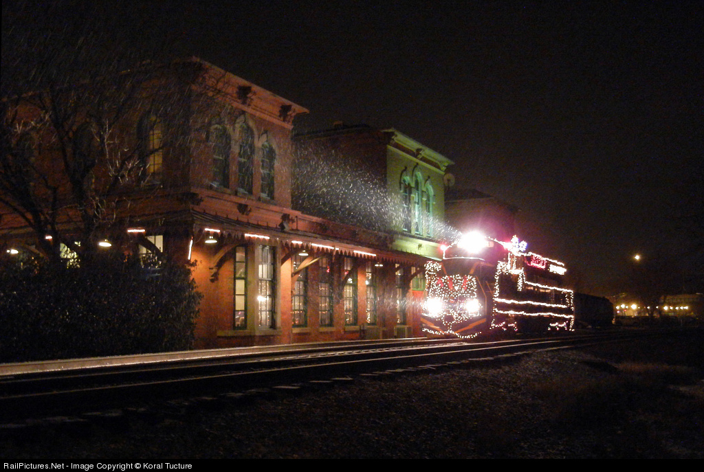 Shelly Materals SD18 poses in front of the old Atlantic & Great Western Railway Depot for photos after dropping off Santa down town.