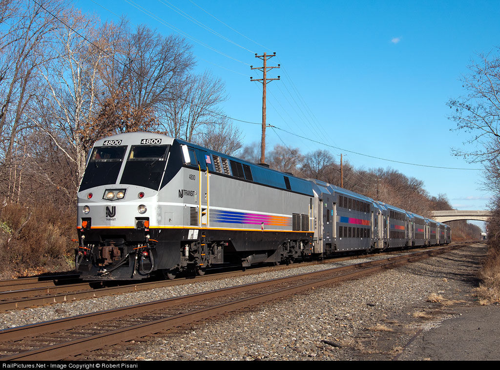 | NJT 4800 takes a break from its typical assignment on the ACES train to Atlantic City, and is seen leading a run of the mill midday commuter job to Raritan. |