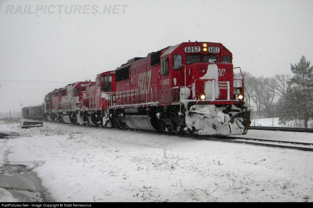 Minnesota's first snow storm of the year and an awesome EMD consist takes the siding at South Haven led by SOO 6052, with SOO 1532, SOO 6047, and CP 5966.