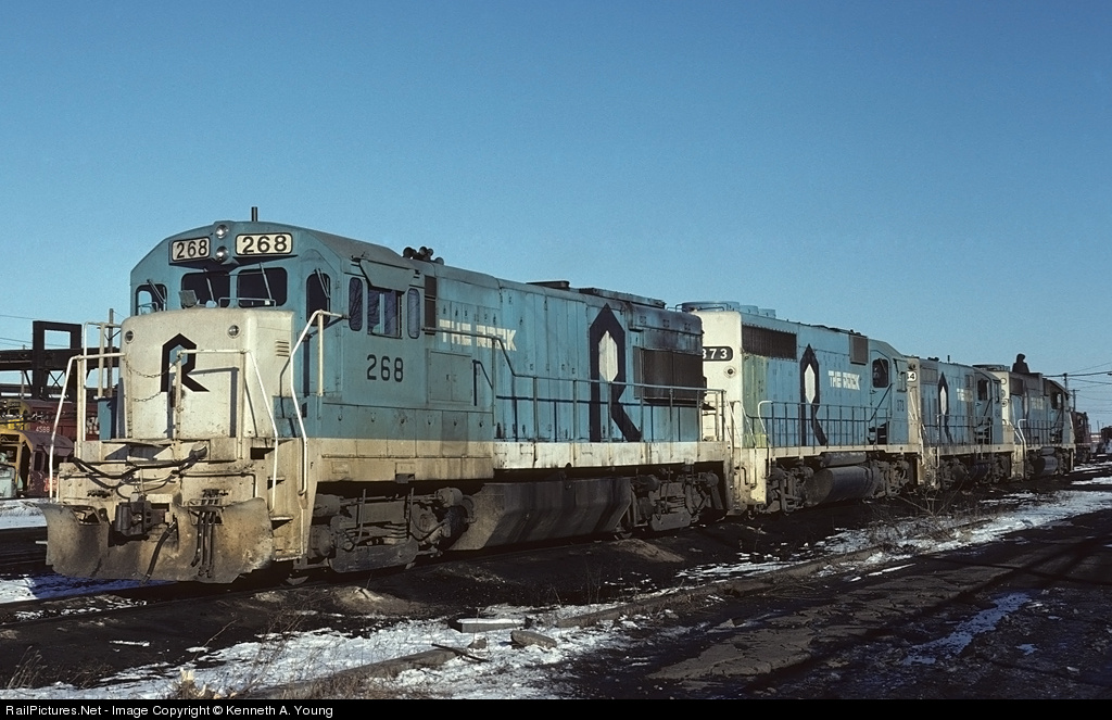 Rock Island 268 leads a U28B/GP40/GP7/GP38-2 lashup near the Silvis Shop less than a month before shutdown.
