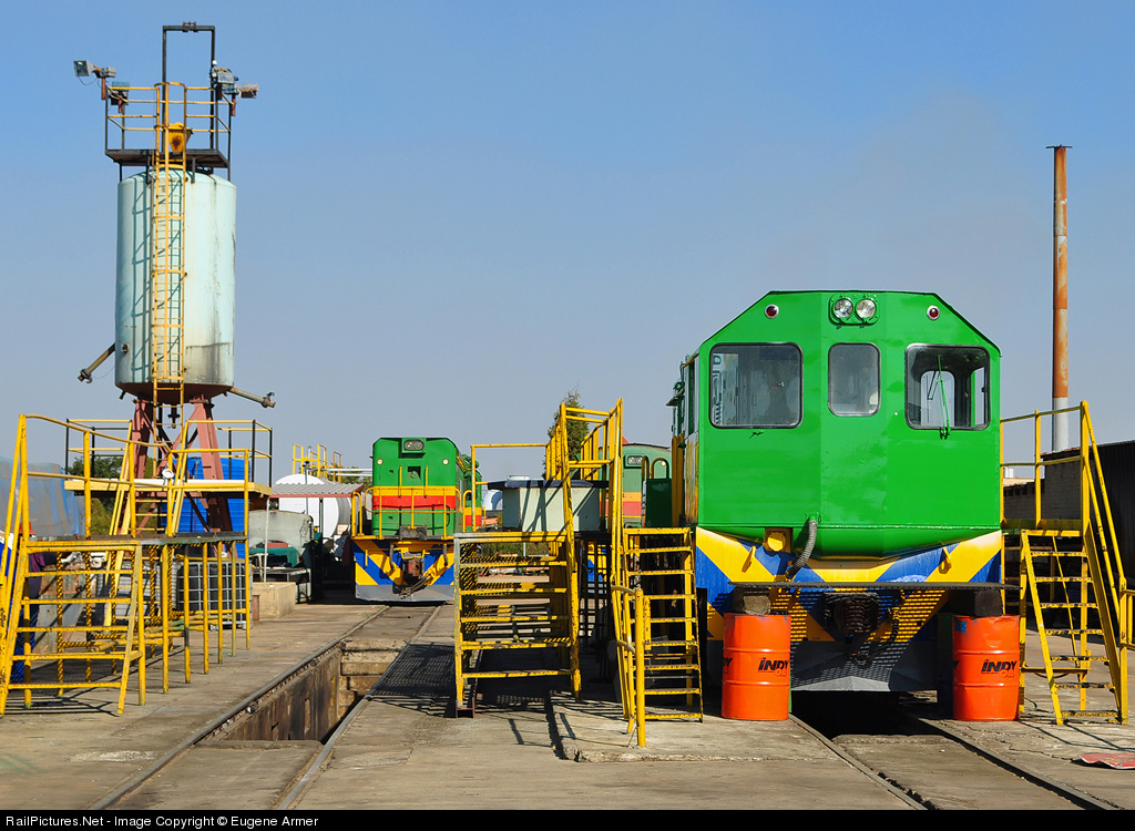 | After a complete overhaul, Sheltam's G18U is receiving a new coat of paint at Cooke Plant depot. This loco previously operated at Bank Colliery. In the left background is an EMD GT26MC, ex- SAR class 34-221. Photographed with permission. |