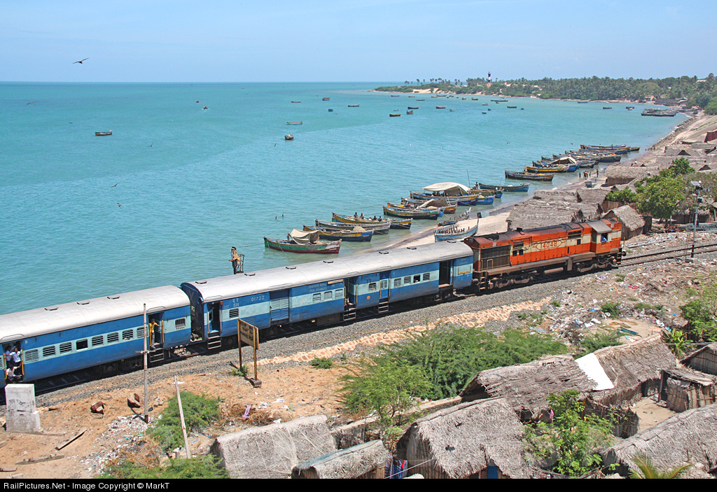 Part 3 of the Pamban Bridge Trilogy - 14048 curves off the bridge and past the fishing village of Pambam on the final run into Rameswaram. Thanks for these should also go to the rickshaw driver who managed to understand this crazy Englishman's instructions to keep overtaking the train and then stop again! See more at www.youthwith.fotopic.net.