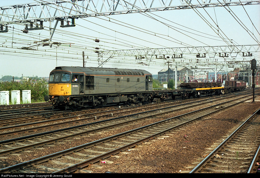 | 33065 takes a departmental train from Leyton, west through Stratford at 12:40. 33065 was withdrawn in February 1997 and is currently preserved (info courtesy WNXX.com). |