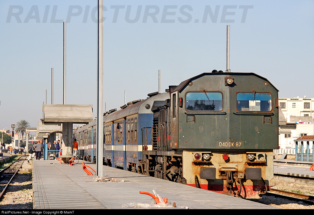 6 cylinder ALCO power DK87 pushes out of Hammam Lif with a train full of morning commuters to Tunis. The posts that surround the engine will soon seal its fate as electrification work will replace the diesel locomotives and push-pull stock with electric mulitple units. Until that times it is a fascinating place to watch ALCO hauled passenger trains every 5 minutes or so! See more at www.youthwith.fotopic.net.