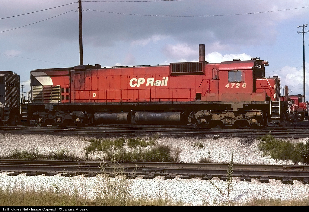 | Another shot from my day at Agincourt years ago. The cab of sister unit CP 4725 is barely visible at the back right edge; the end of CP 5004 is seen on the left edge. A great