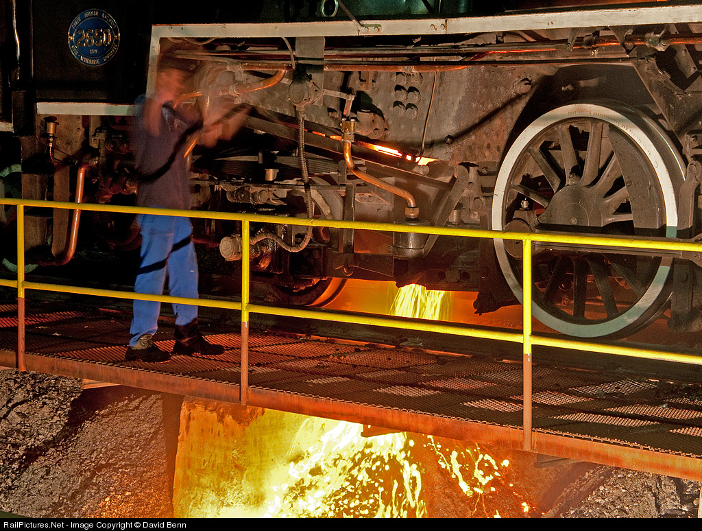 Most of the fire in the Friends of the Rail 19D has been dropped into the ash pit during fire cleaning at the end of a busy day during the weekend of the celebrations of 150 years of Rail in South Africa.