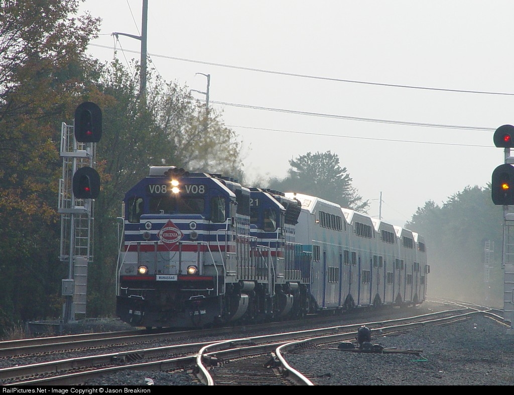 RailPictures.Net Photo: V08 Virginia Rail Express (VRE) EMD GP39-2C at Manassas, Virginia by Jason Breakiron