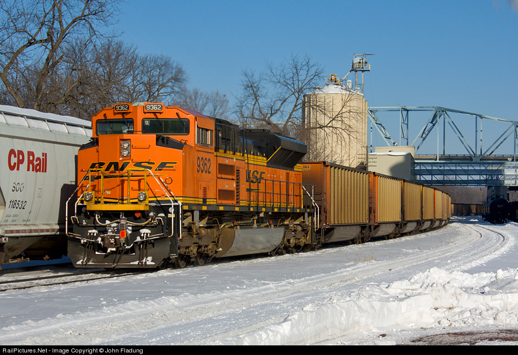 | In near perfect lighting conditions BNSF 9362 pushes on the rear of a coal train winding through Red Wing. This was a pleasant surprise considering the head end of this train had two peach SD70MAC's. |