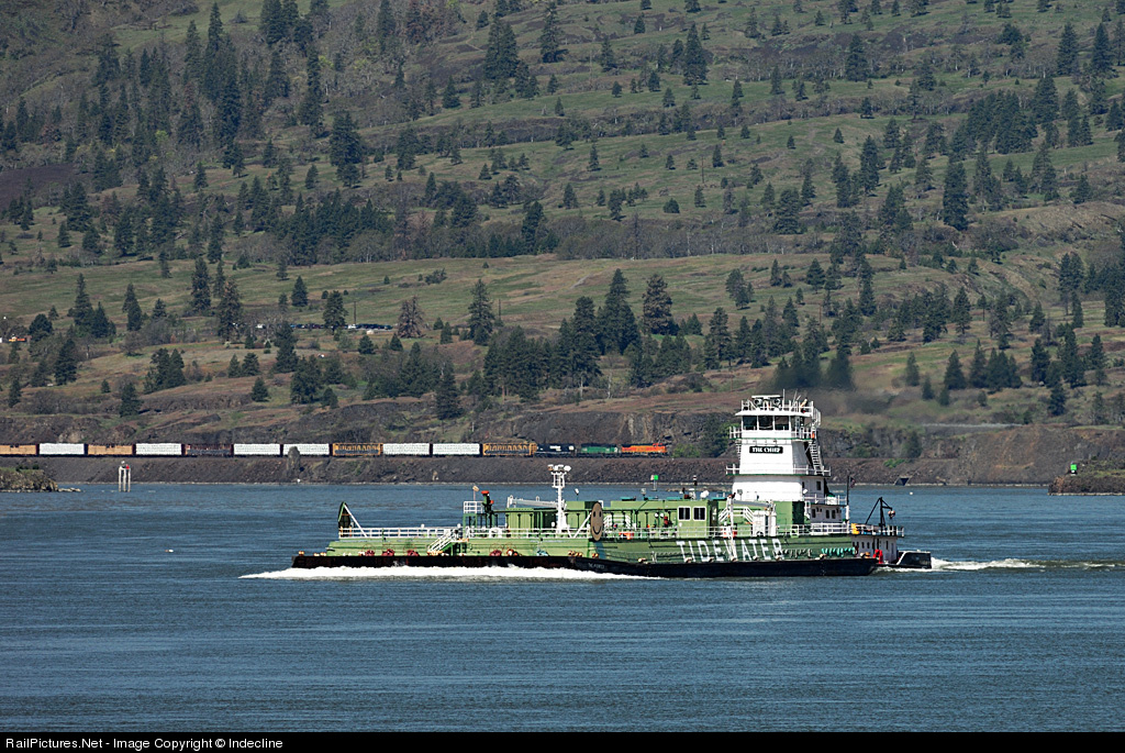 Two of the three major forms of freight transportation along the Columbia River Gorge are shown here.