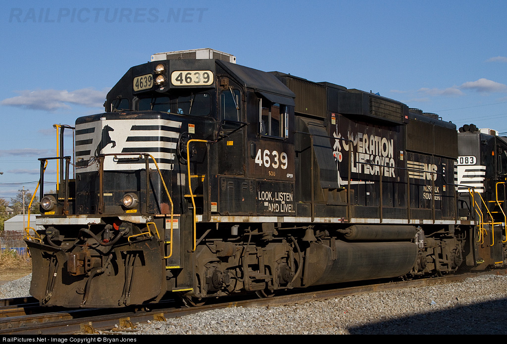 | Norfolk Southern GP59 #4639 wearing the "Operation Lifesaver" logo. While the paint is worn, it still appears in fairly good condition for the most part after all these years. |