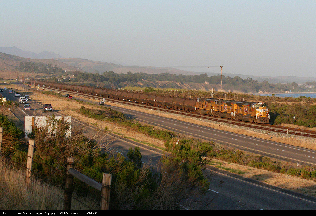A late summer evening along UP's Coast Line finds the ODOWP heading back up the California coast passing the siding at Capitan along side US 101.