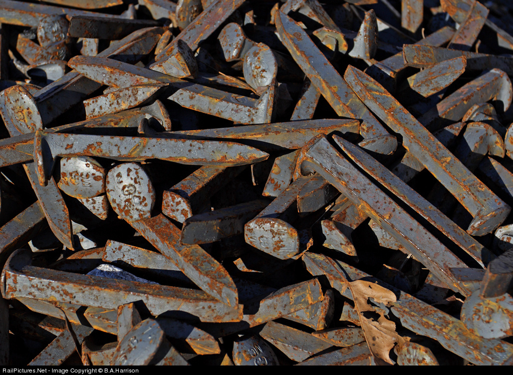 A plethora of spikes cover the ground trackside at Hagans Switchback, the only mainline switchback in the continental U.S.