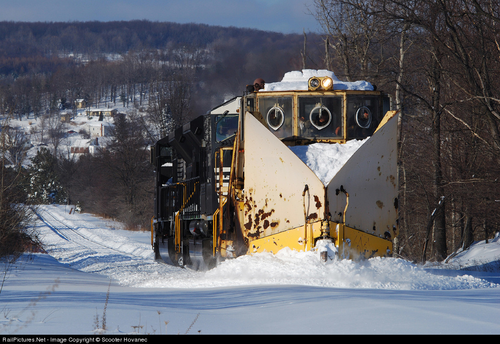 | Western PA gets its fair share of snow, but it isn't too often that you can find yourself up to your neck in it. I found myself literally up to my neck in the white stuff while walking across a field to catch one of NS's former Conrail Jordan spreaders at work near the south end of the South Fork Secondary. A pair of 80MAC's are the power for the move, the first of three over the next week on the branch. |