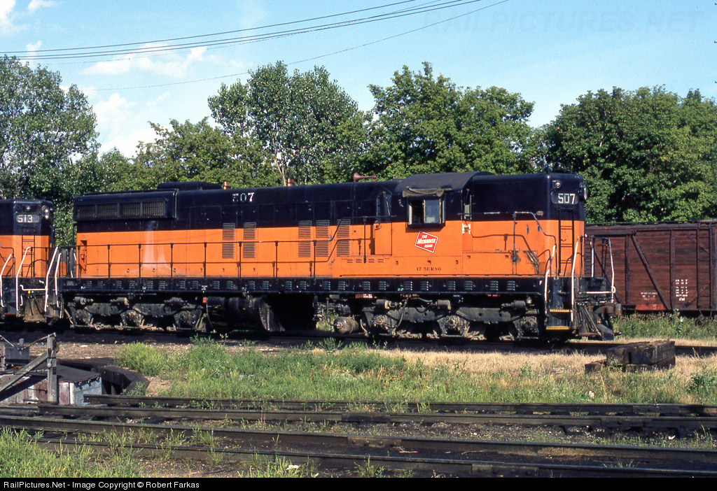 Here's more than a roster shot of MILW 507 taken in August of 1975. There are two pieces of history suggested by the glimpses of the turntable in the lower left corner and the wooden box car to the right of 507.