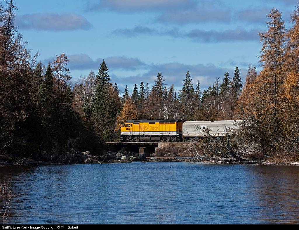 My favorite of all favorite rail lines..... the ACR, or what's left of it. The southbound Tour of the Line is seen here crossing a small trestle over one of endless lakes along the line which cuts through the heart of Northern Ontario. CN 106 South is approaching the North siding switch Wanda and is hot on the heels on the daily southbound wayfreight L572 (5615 south) This may be one of the last shots of CN 106 in its ski-train paintscheme that CN purchased it in. The entire trainset is to be refurbished & repainted in time for the 2011 tourist season!