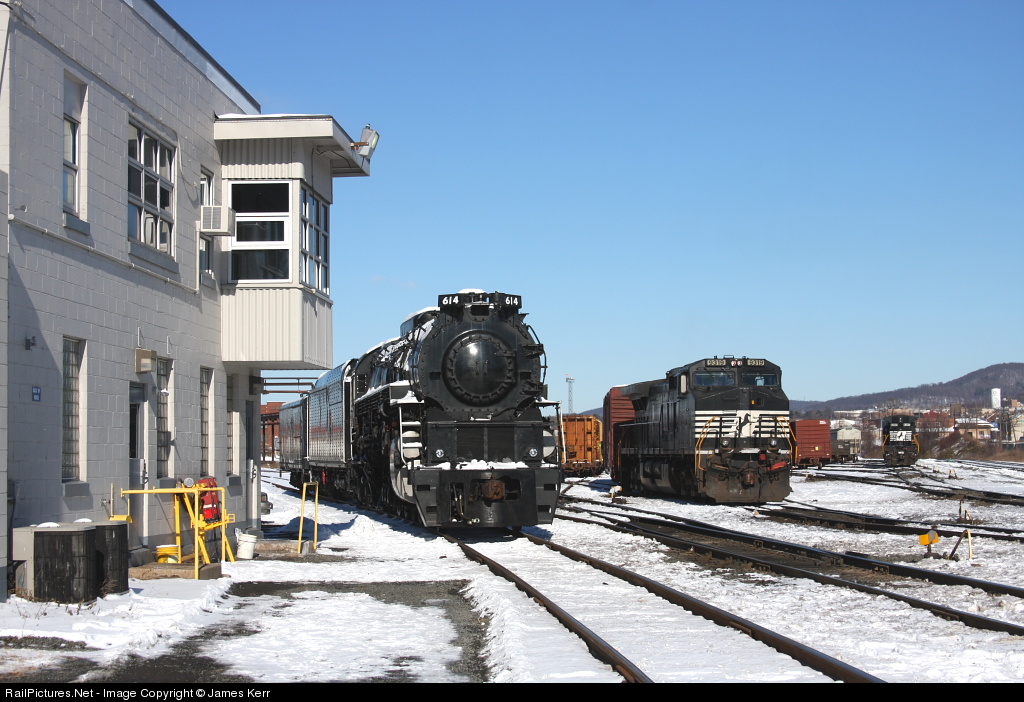 Finally on the move! At least as far as Reading, PA's Spring Street Yard, the much awaited move of the C&O 614 to Roanoke, VA has begun. Dropped off by the Reading & Northern the night before, C&O 614 watches the latest generation of replacements on local H31 shift out its train. Photo taken with permission..
