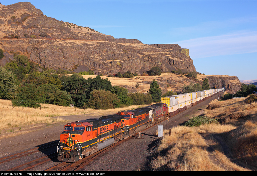 RailPictures.Net Photo: 1020 BNSF Railway GE C44-9W (Dash 9-44CW) at Lyle, Washington by Jonathan Lewis - www.milepost39.com