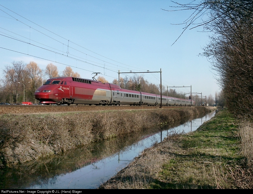 Thalys TGV High Speed Train seen just before passing Dordrecht Zuid Station on the way from Amsterdam to Paris France