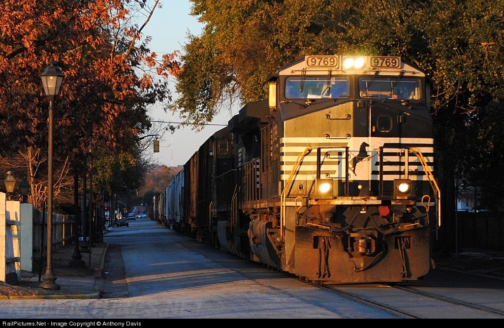 | Late Isn't Always Bad! A rare evening running NS 191 finally got the block down the middle of 6th Street towards Norfolk Southern's Augusta Yard, with a recently rerated Dash 9-44CW. |