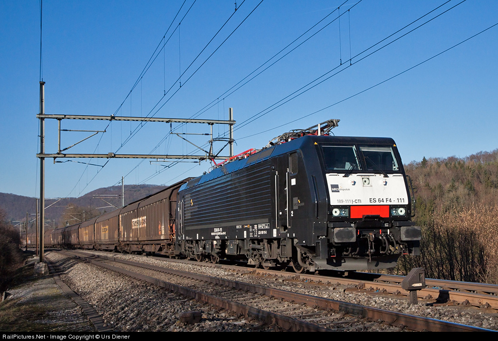 | Captrain Italia 189 111, leased from MRCE Dispolok, with a freight train from Dortmund-Obereving (Germany) to Modena (Italy). |