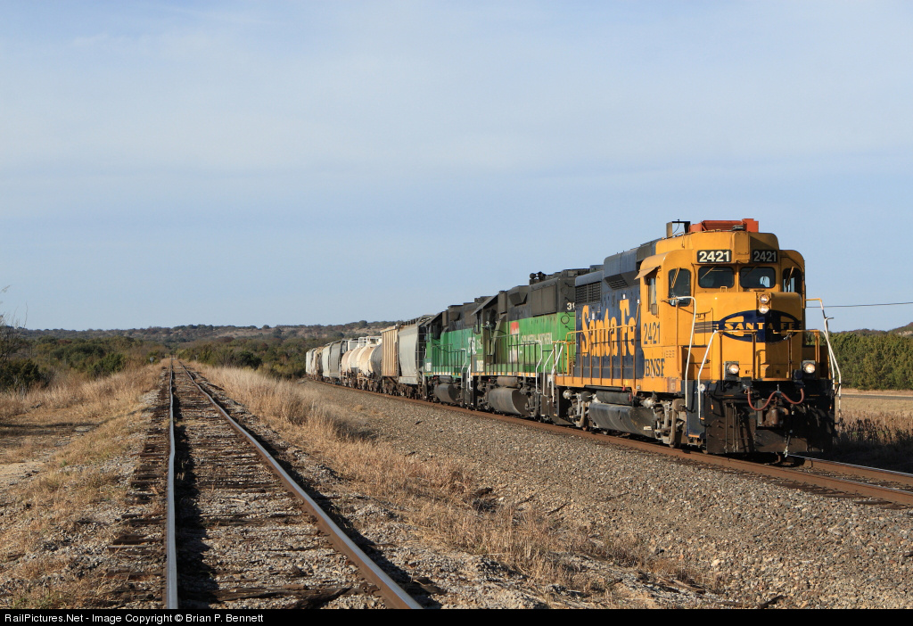 Along the Gulf Colorado & San Saba Railway, the West Local coasts up into the yard at Lometa, preparing to do an hour of switching before heading for home in Temple. Watching and videoing these three units switch cars for an hour was very enjoyable, knowing any day could be the last time we experience the class and character of first-and-second generation EMD units on a Class I.