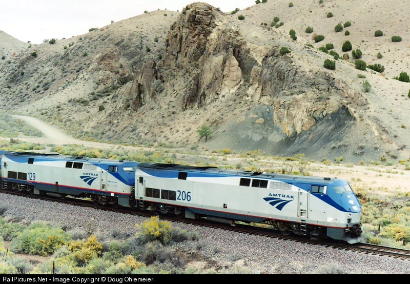 | Amtrak's eastbound Southwest Chief passes scenic Devil's Footstep, between Lamy, N.M., and Albuquerque. Shot with 80-200MM zoom lens, 200 speed film. |