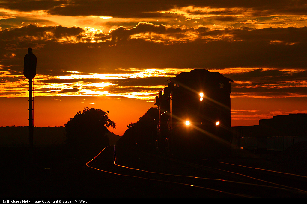 After a nasty storm ripped through the small town of McBride, BNSF 5283 runs from the stunning sunset with taconite loads behind.