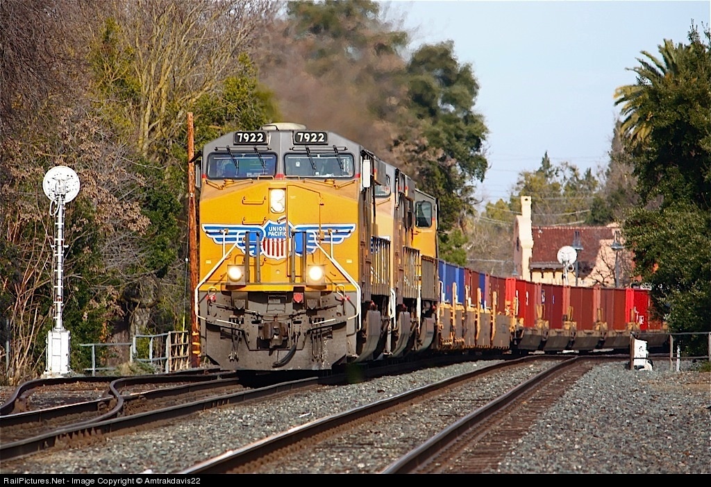 | After being stopped in East Davis for awhile due to a UP manager on the main, UP 7922 gets back on the move and heads west towards its final destination of Oakland. |