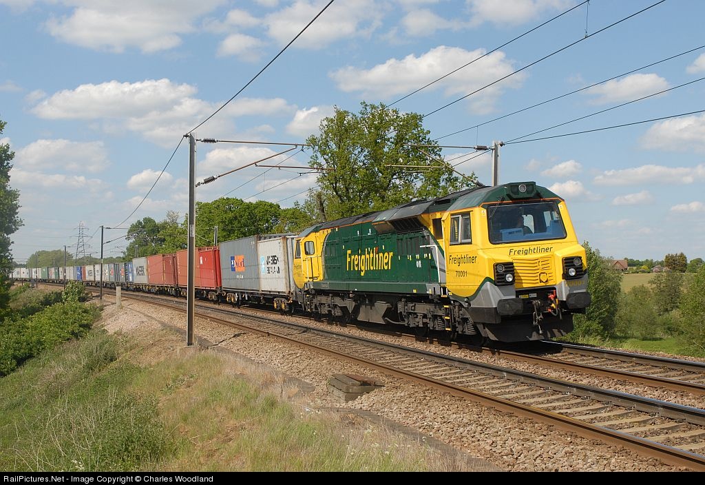| During a trip to East Anglia the weather was kind and during the 28th May 2010 Freightliners new GE Class 70 Powehaul locomotive 70001 was to be found working 4M93 Felixstowe - Hams Hall intermodal. The train is to be found passing Brantham foot crossing in the afternoon sun. |