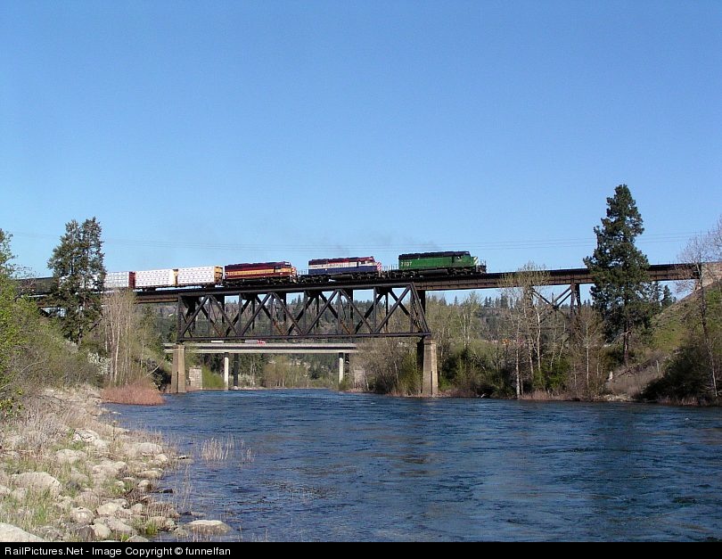 The Pasco-Laurel storms east out of Spokane over the Spokane River.